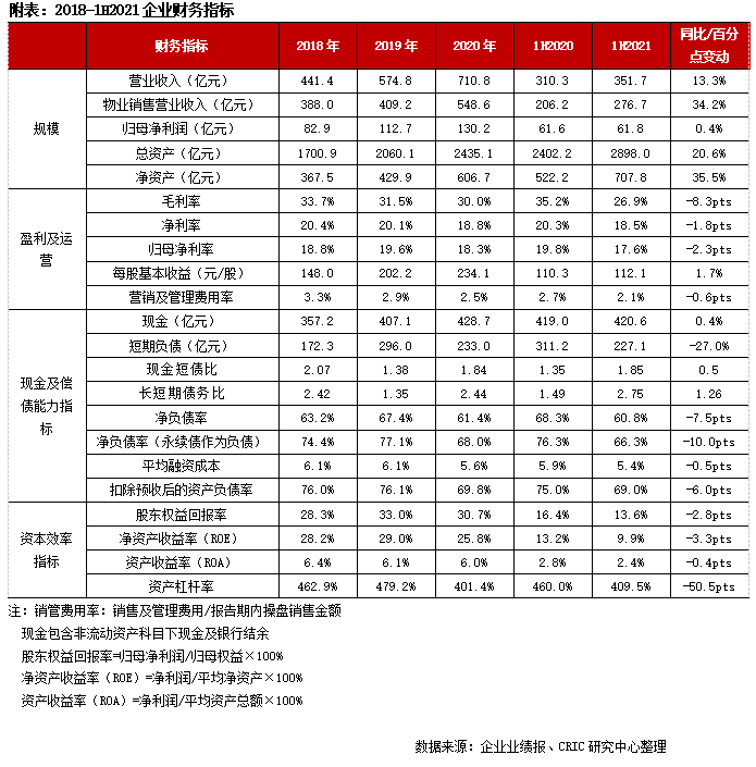 上半年新增融資成本為4.6%,報(bào)告期末加權(quán)平均借貸成本為5.4%,較2020年末進(jìn)一步降低,保持在行業(yè)低位區(qū)。
