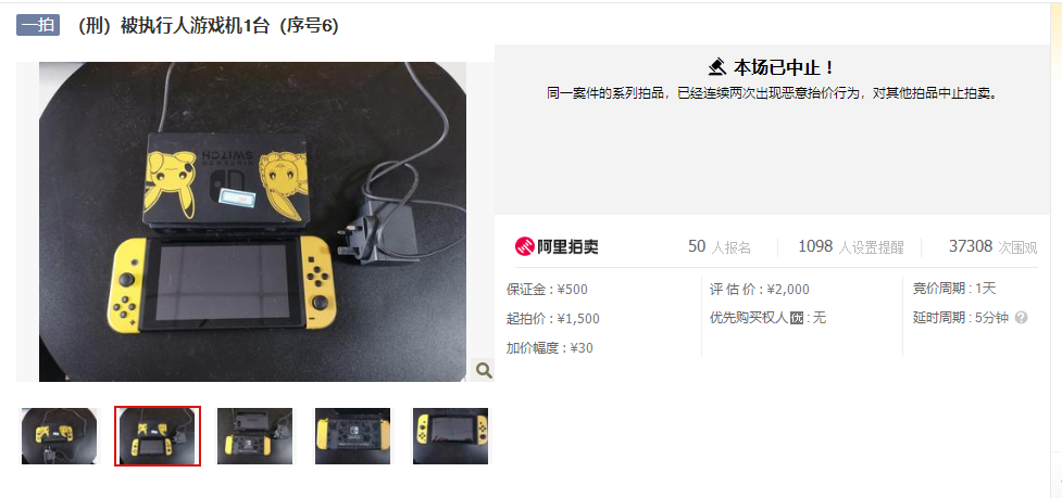 “同一案件的系列拍品,已經連續兩次出現惡意抬價行為,對其他拍品終止拍賣。”根據平臺公告,受近兩日天價游戲王卡牌和U盤的影響,已中止對該持有人其他拍品的拍賣活動。