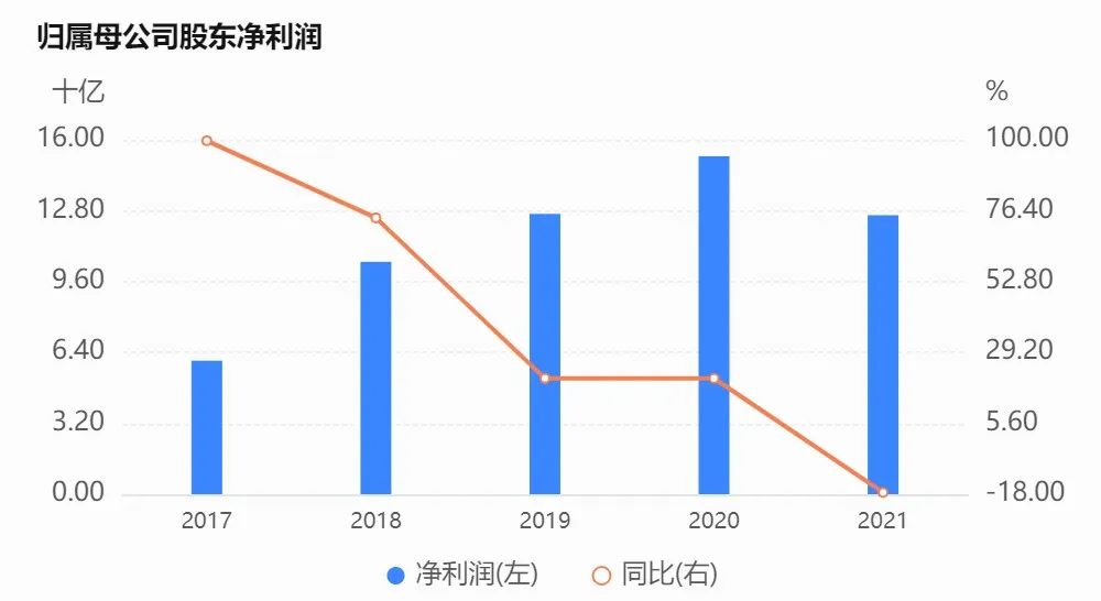 利潤方面新城控股表現沒那么好,2021年凈利潤137.6億元,同比下降16.4%;歸母凈利潤同比下降17.42%,為125.98億元,相比過去5年大幅滑坡。