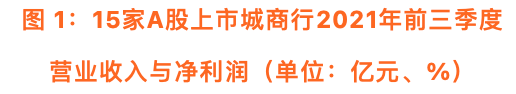 縱觀15家A股上市城商行,2021年前三季度的整體業績表現為正增長,呈現出逐步擺脫疫情影響的良好經營態勢。零壹智庫選取營業收入與歸母公司凈利潤2項指標,綜合觀察城商行之間的業績表現: