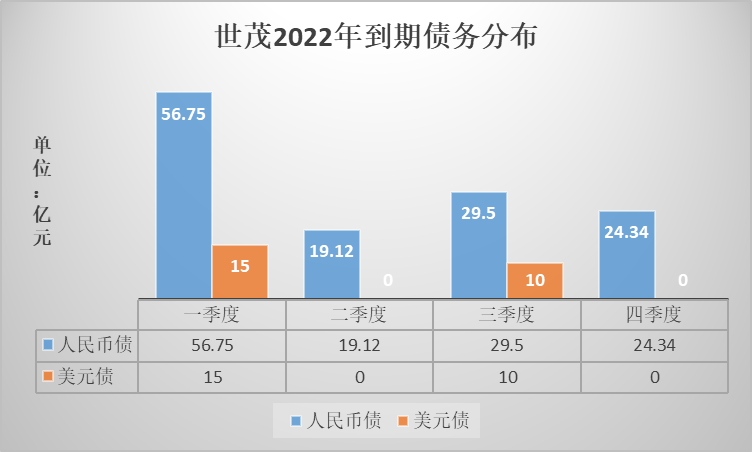 根據(jù)公開(kāi)資料顯示,世茂2022年到期的公開(kāi)市場(chǎng)債務(wù)合計(jì)約為130億人民幣與25億美元。其中一季度則是全年之中到期債務(wù)的高峰。