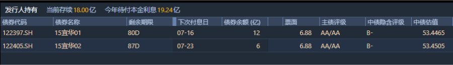 宜華生活當前流通中債券存續余額18億元,今年待付本息高達19.24億元。
