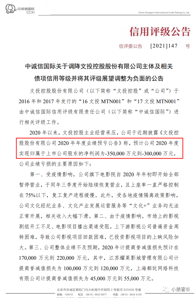 中誠信國際認為,2020年文投控股業績大幅虧損且短期償債壓力加大,同時其影城經營、影視投資制作及網絡游戲業務的回升仍存在不確定性, 公司2021年業績改善有待進一步觀察。