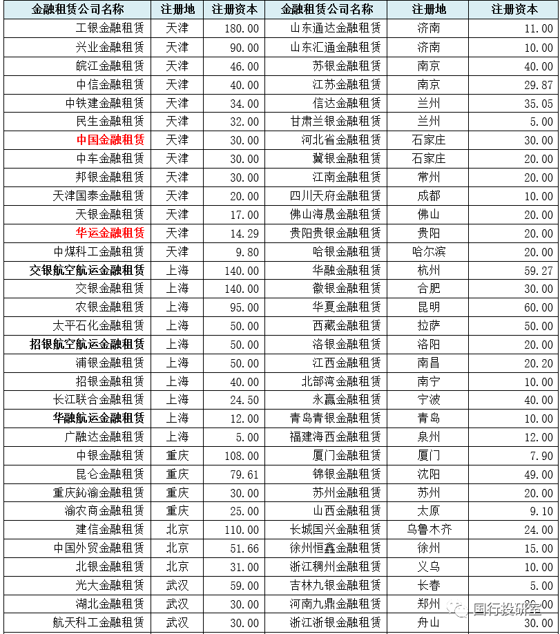 別外一部分租賃公司則是信托投資公司的下屬地方公司設立,如廣東國際租賃、海南國際租賃以及武漢國際租賃。