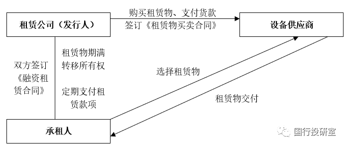 2、直接租賃則會涉及設備供應商、租賃公司(發行人)和承租人三方,即發行人與承租人簽訂融資租賃合同,并根據承租人的要求向設備供應商購買承租人所需設備并支付貨款,設備運抵承租人經營地并投入運行后,承租人按融資租賃合同的相關約定定期向發行人支付租賃款項,而租賃期滿后,發行人向承租人以名義價格轉讓相關租賃資產的所有權。