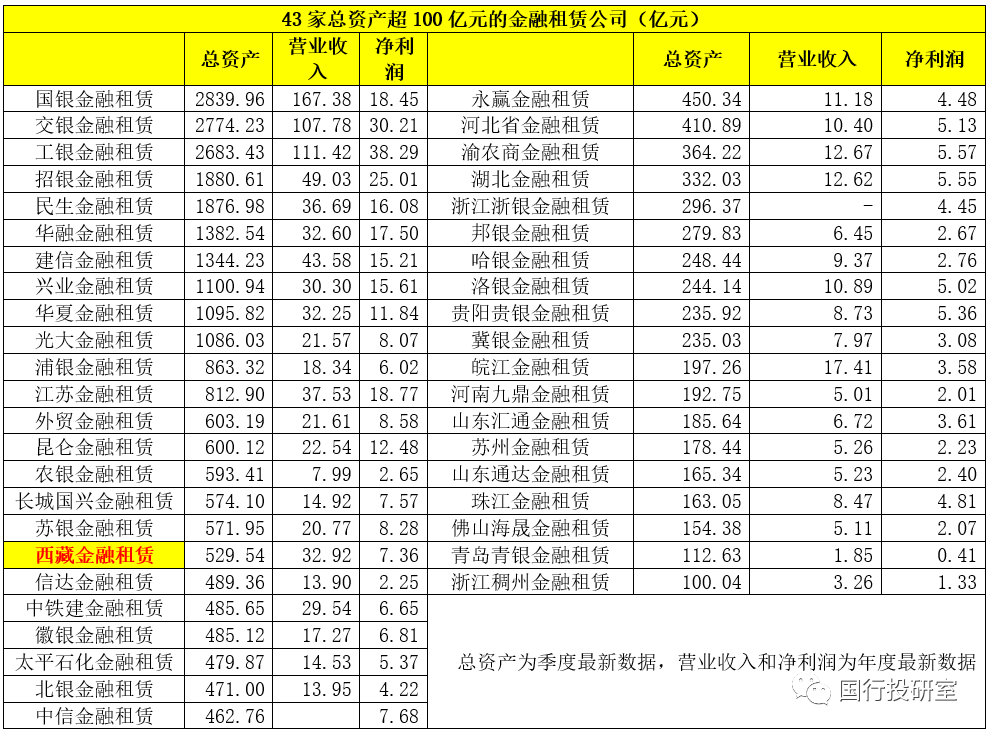 本篇報告聚焦金融租賃行業和全部70余家金融租賃公司。