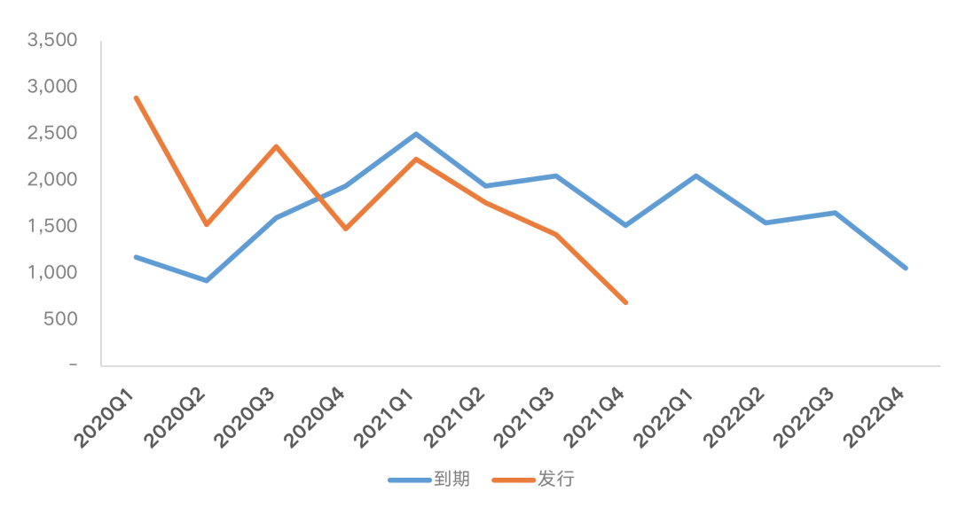 圖:房企2020年以來發債及到期債券情況(單位:億元)