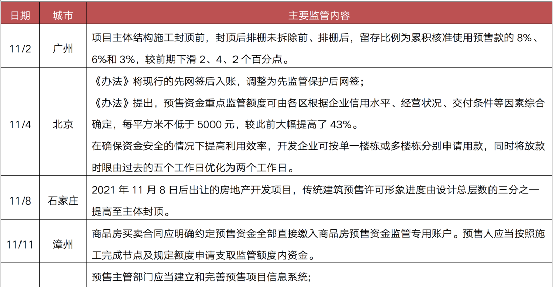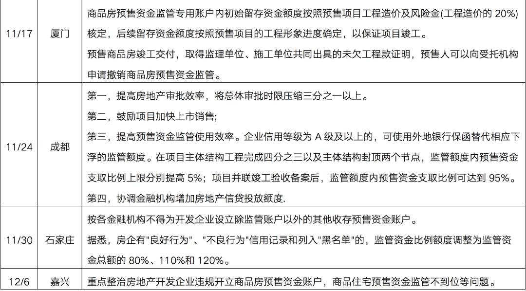 表:11月以來各熱點城市持續加碼預售資金監管新規