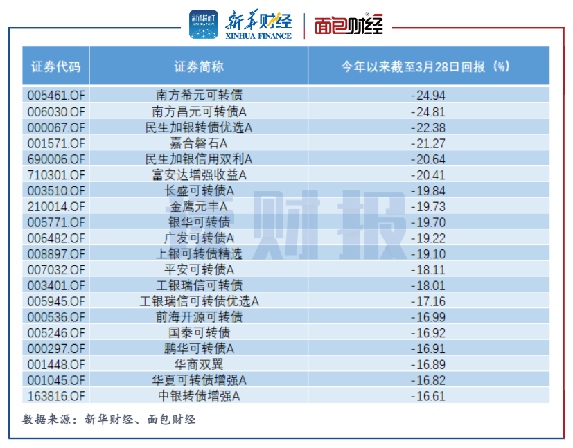 研究發(fā)現(xiàn),虧損靠前的“固收+”產(chǎn)品中可轉(zhuǎn)債基金占據(jù)其中很大的一部分,南方希元可轉(zhuǎn)債、南方昌元可轉(zhuǎn)債A是其中較為典型的兩只產(chǎn)品。