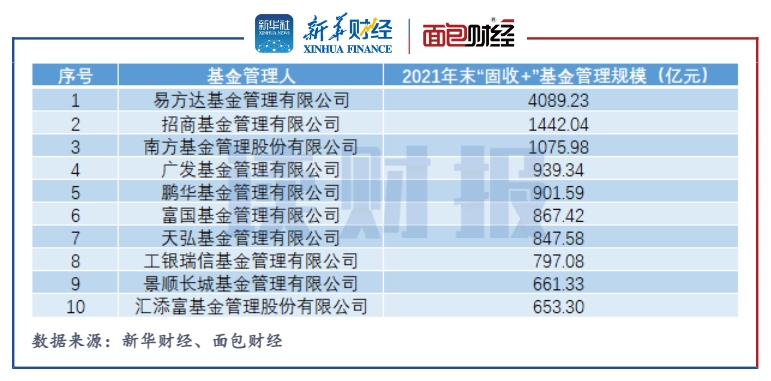 圖3:2021年末“固收+”基金管理規(guī)模排名前10的基金公司