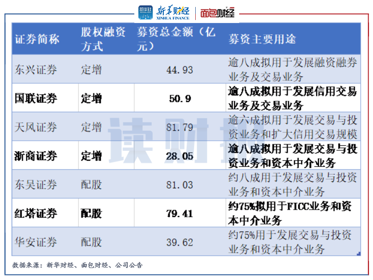 2021年年末,天風證券、紅塔證券和國聯證券的凈資本分別為168.25億元,211.29億元和148億元,同比增幅接近或高于50%,上述券商在年內均通過股權融資方式完成了補血。