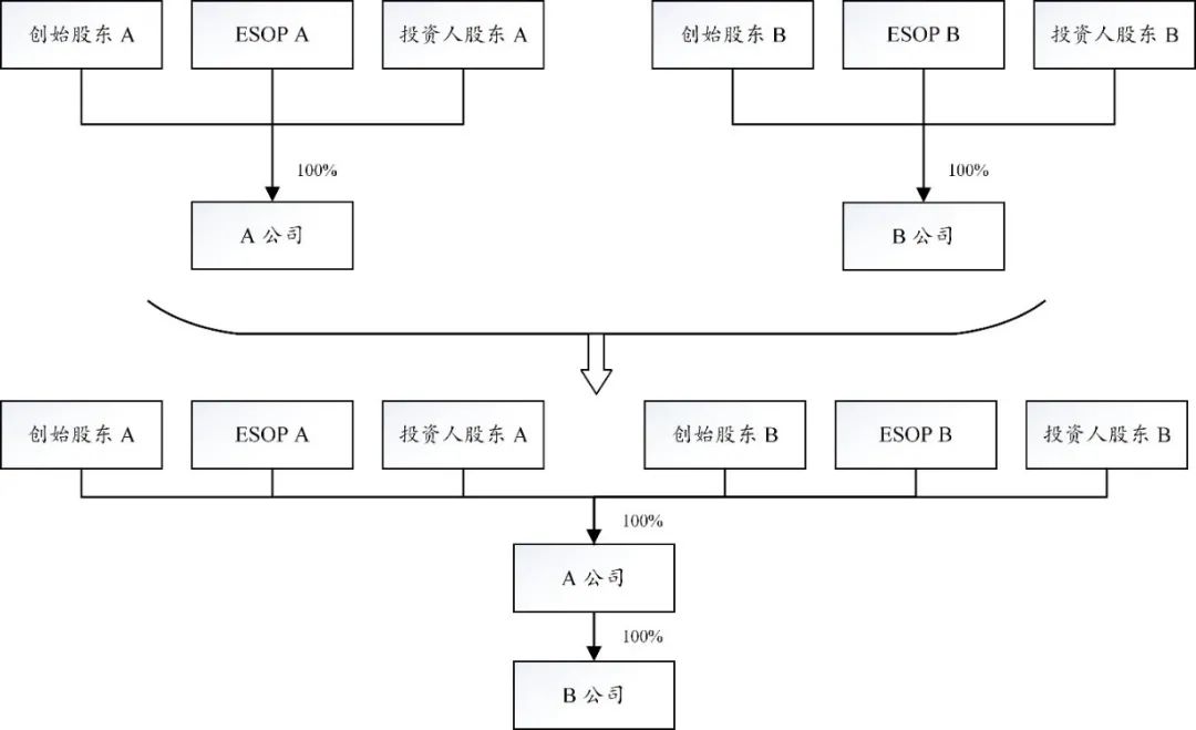 合并后公司治理結構的焦點將集中于合并后的A公司,在估值相近的合并主體之間的合并交易中,較容易形成股東會及董事會的均勢。該等均勢有利于各方達成合并交易并確保各方的權利得以保障。不過,如何保證合并后A公司在該等均勢下的順利運行以及在出現僵局的情形時,如何設置解決機制,則需要根據合并主體的具體情況,由業務、財務及法律協同確定。為此,各方可通過制定并實施系統性的公司治理及運營管理制度,對合并后的A公司及B公司的管理及運營權限進行細化,該等制度包括股東會及董事會議事規則、對外投資及對外擔保管理制度、證照及印章管理制度、業務管理制度、財務管理制度等。