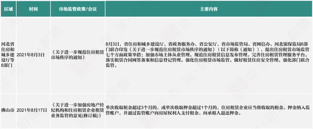 此外,河北省住房和城鄉建設廳等6部門印發《關于進一步規范住房租賃市場秩序的通知》;佛山市印發《關于進一步加強房地產經紀機構和住房租賃企業租賃業務監管的意見(修訂稿)》;成都在全國率先出臺了《成都市人民政府辦公廳關于加快發展保障性租賃租房的實施意見》。
