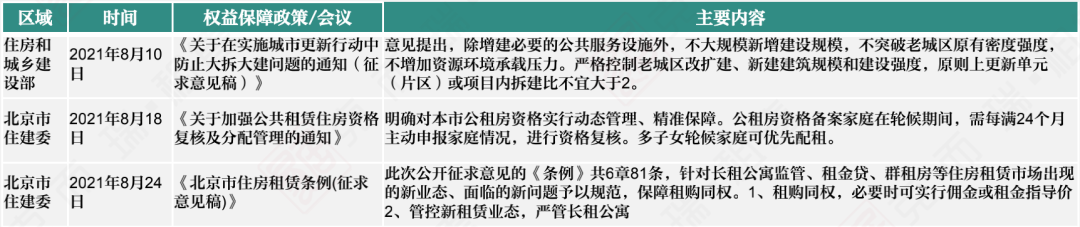 表:2021年8月租賃供應相關政策
