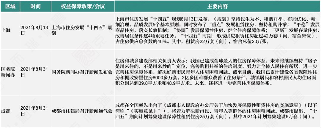 8月2日,上海率先發布《關于調整本市職工提取住房公積金支付房租月提取限額的通知》提高了市場性租賃住房月提取限額。隨后在上海發布的住房發展“十四五”規劃中,又提及了堅持民生為本、租購并舉、布局優化、精細治理、品質發展5個基本原則。
