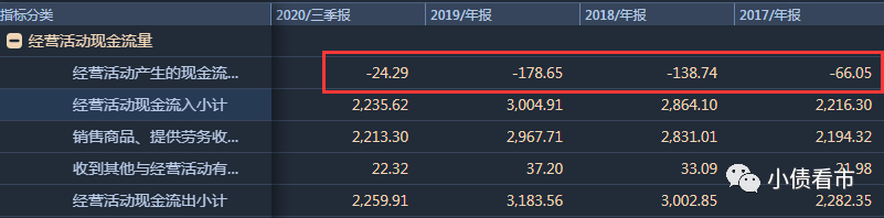除了經營業績欠佳,蘇寧易購的經營獲現能力也在持續惡化。