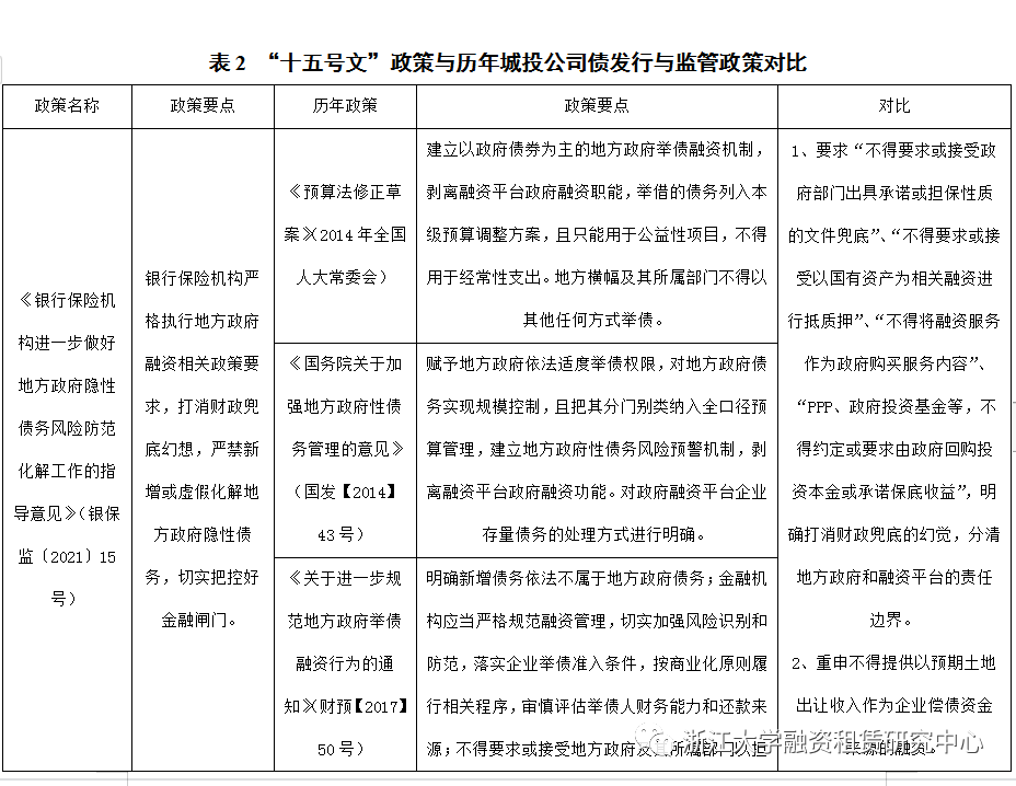 2021年7月,銀保監(jiān)會(huì)印發(fā)“十五號(hào)文”,要求各銀行、保險(xiǎn)、基金、信托等金融機(jī)構(gòu)嚴(yán)格執(zhí)行地方政府融資相關(guān)政策要求,強(qiáng)化合規(guī)管理、盡職調(diào)查,嚴(yán)禁新增或虛假化解地方政府隱性債務(wù),切實(shí)把控好金融閘門(mén)。