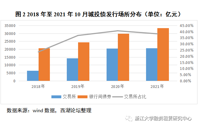 1、城投債發(fā)行規(guī)模波動(dòng)較大,交易所占比有所下降