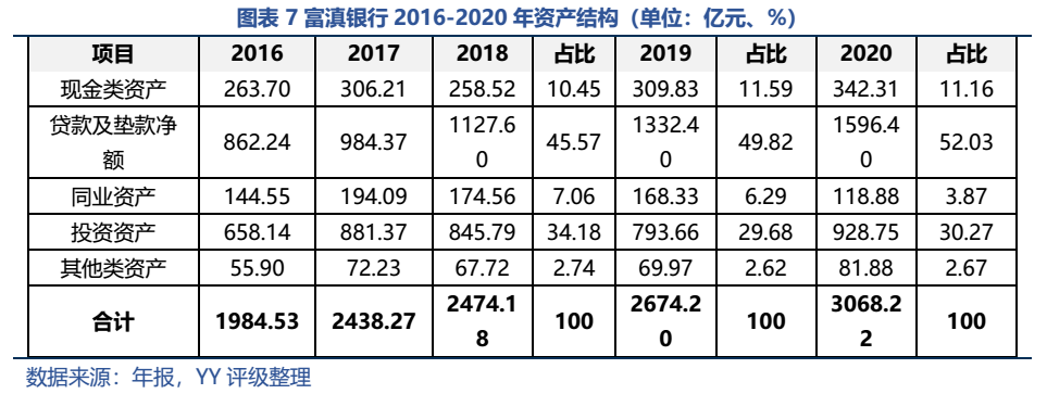 現(xiàn)金類資產(chǎn)主要是由法定存款準(zhǔn)備金所構(gòu)成,該部分資金隨著存款規(guī)模上升而被動(dòng)增加,近三年來占比波動(dòng)不大。