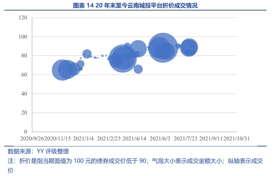 近期云南城投債成交的情況來看,自2020年末起折價(jià)成交頻繁,省屬平臺(tái)和區(qū)縣兼而有之。
