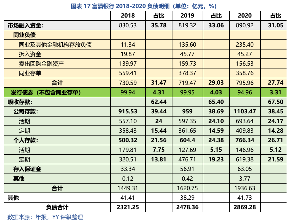 富滇銀行在同業(yè)間認(rèn)可度不高,背后可能要從資產(chǎn)流向(大量流向認(rèn)可度相對較低的省內(nèi)城投)方面找原因,反應(yīng)其負(fù)債端成本剛性且過高,同業(yè)負(fù)債的可得性也可能走弱。