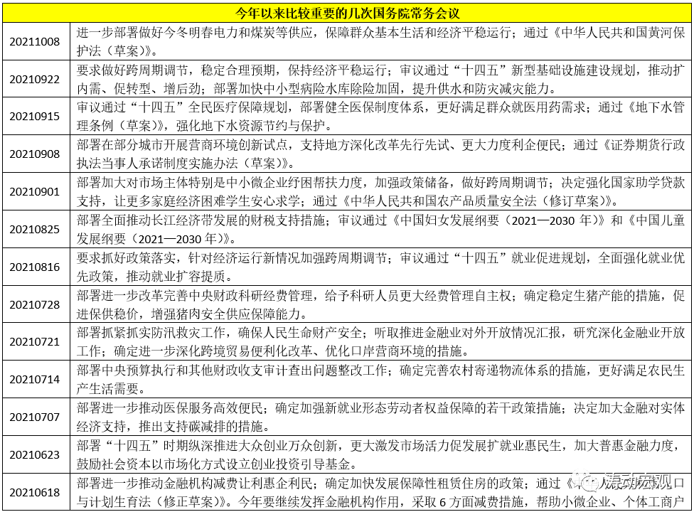 此外需要特別關注兩次國務院常務會議的政策指向。