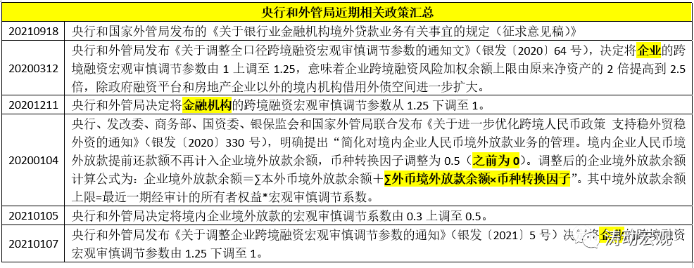 3、2021年9月18日央行和國家外管局發布的《關于銀行業金融機構境外貸款業務有關事宜的規定(征求意見稿)》,建立了本外幣一體化的境內銀行境外貸款政策框架(不適用于貿易融資),明確以下要點: