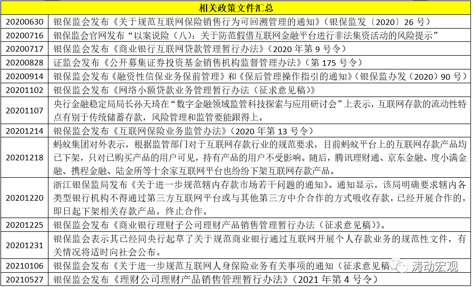 整體來看除公募基金仍受到政策鼓勵、可以繼續通過互聯網平臺拓展客戶外,諸如保險、理財、存款等金融產品均明顯受到約束。其中互聯網存款被叫停、短期內理財銷售借助互聯網企業批量拓客的政策約束不會放開、公募基金和私募基金的互聯網銷售則被明確鼓勵。