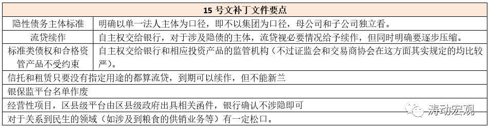 2、考慮到融資平臺屬于地方隱性債務的主要構成部分,因此2021年3月26日江蘇省發布的《關于規范地方融資平臺公司投融資行為的指導意見(征求意見稿)》亦引起廣泛關注。不過最為值得關注的政策文件可能是2021年7月上旬銀保監會發布的《銀行保險機構進一步做好地方政府隱性債務風險防范化解工作的指導意見》。2021年8月6日,為避免一刀切負面帶來的影響,銀保監會隨即發布補丁文件進行修正(隱性債務主體認定、流貸續作、債券和資管產品投資等方面有一定松動),但整體上修正內容不多,15號文的嚴基調仍被保留。