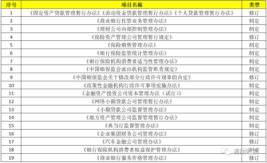 1、銀保監會2021年規章立法計劃