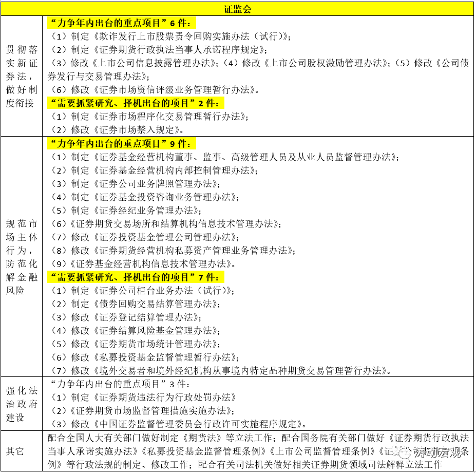 2、證監會2021年規章立法計劃
