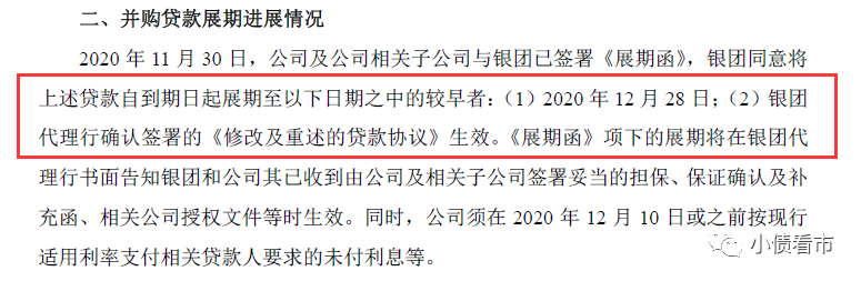并購貸款展期進展公告