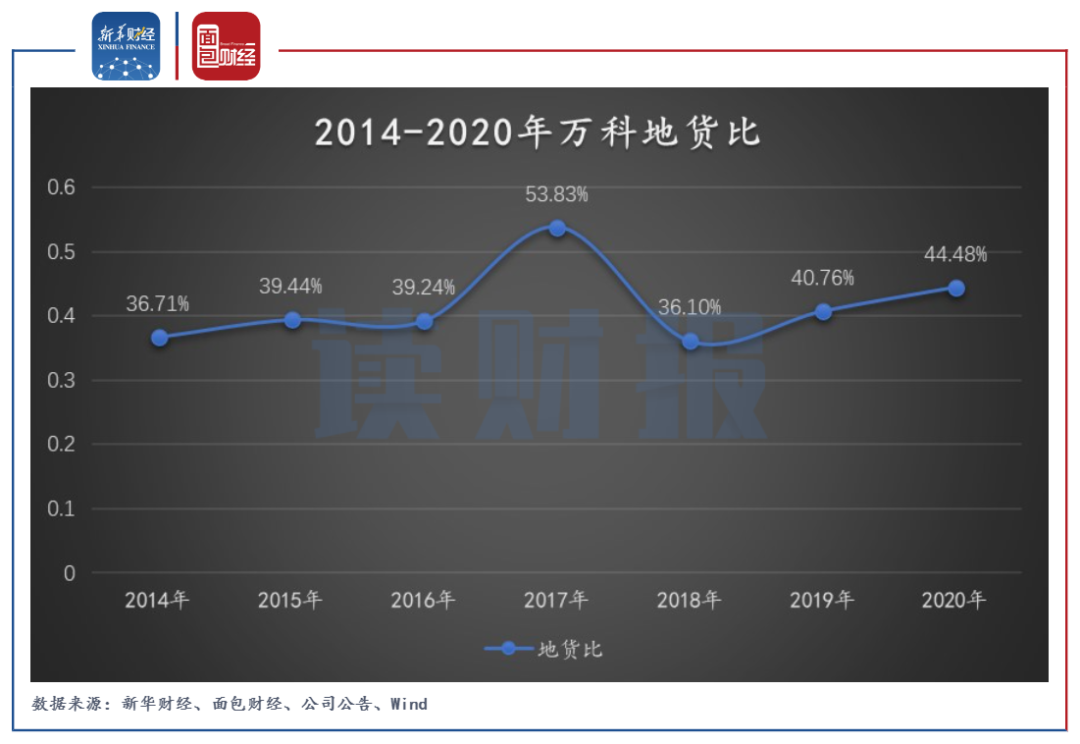 圖3:2014-2020年萬科地貨比