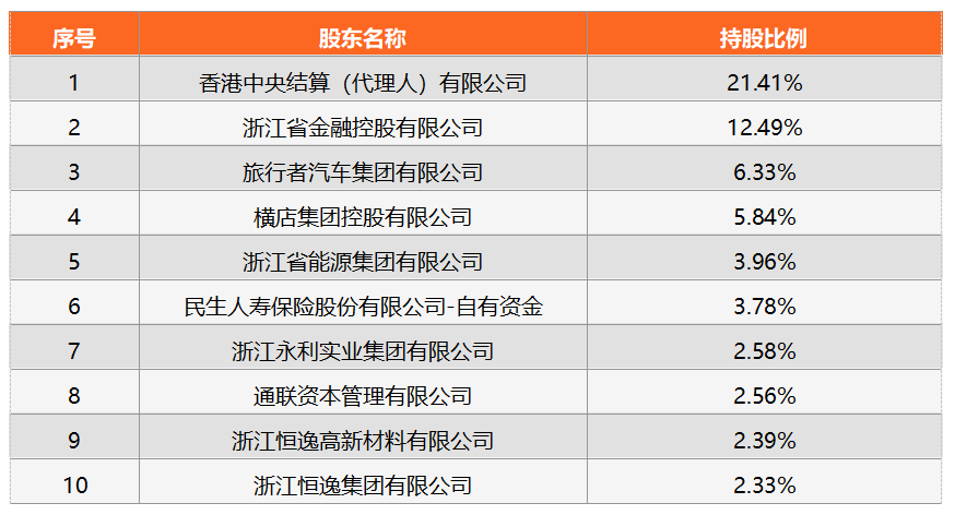表 1:浙商銀行的十大股東結構情況