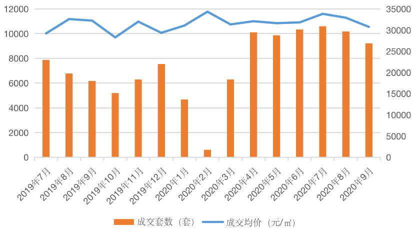 圖:2019年7月-2020年9月二手房成交量價月度走勢