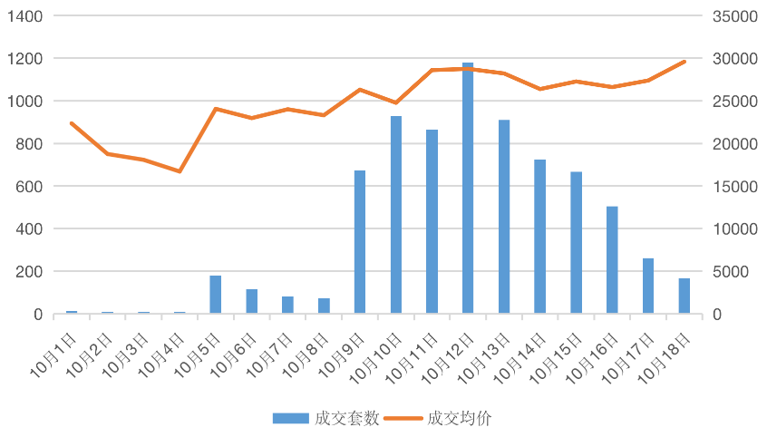 圖:2020年10月1-18日單日成交量價(單位:套、元/平方米)