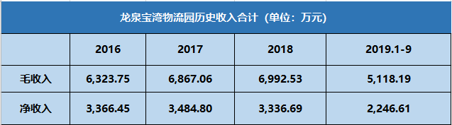 2016~2018 年,龍泉寶灣物流園使用率分別為 98.1%、96.2%和 100.0%。截至 2019 年 9 月末,龍泉寶灣物流園加權平均倉儲價格為 25.74 元/平方米/月。