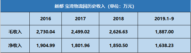 2016~2018 年,新都寶灣物流園使用率分別為 99.6%、93.9%和 100.0%。截至 2019 年 9 月末,新都寶灣物流園加權平均倉儲價格為 30.36 元/平方米/月。