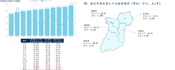但換個角度來看,宿遷目前債務負擔在省內處在一個相對較低的水平,存在一定的舉債空間,另外依托洋河和京東的布局,以及宿遷經開區的產業生態,地方經濟有一定基本盤支撐,再加上承接蘇州產業轉移,整體產業的發展有一定推動力,在淮海經濟圈仍有不錯的競爭力,近10年人口尚可保持緩慢的凈流入。