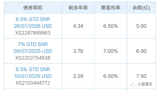 《小債看市》統計,目前融創中國存續境外債12只,存續規模77.62億美元,票息在5.95%-8.35%區間,其中有3只美元債將于一年內到期。