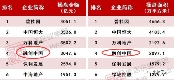 據克而瑞數據,上半年融創中國以3047.6億操盤金額和2097.1萬平方米操盤面積,保住行業老四位置。