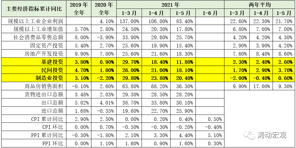 (二)從三駕馬車(chē)的表現(xiàn)來(lái)看,消費(fèi)與投資等內(nèi)需整體上仍處于低位緩慢修復(fù)態(tài)勢(shì),房地產(chǎn)投資與貿(mào)易端延續(xù)了2020年的表現(xiàn),對(duì)上半年的經(jīng)濟(jì)修復(fù)貢獻(xiàn)力度較大,如1-5月的房地產(chǎn)投資累計(jì)同比、貨物進(jìn)出口總額累計(jì)同比分別達(dá)到8.60%和28.20%。其中,房地產(chǎn)投資累計(jì)同比的兩年平均值高達(dá)8.60%,1-5月民間投資與制造業(yè)投資累計(jì)同比的兩年平均值則分別為3.70%和0.60%,較2019年的水平還有不少距離。