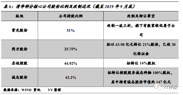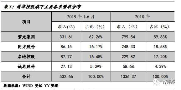 圖2:清華控股及下屬子公司股權結構(截至2019年6月 YY整理)