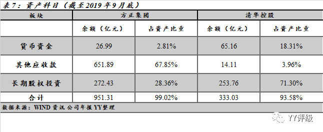 然觀清華控股,其他應收款僅為14億元,僅占總資產不到4%,規模甚小。