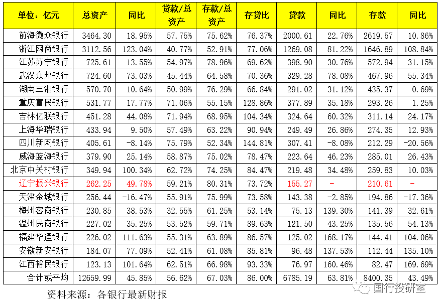 緊隨其后的是湖南三湘銀行、重慶富民銀行、吉林億聯銀行、上海華瑞銀行、四川新網銀行、威海藍海銀行、北京中關村銀行、遼寧振興銀行等。