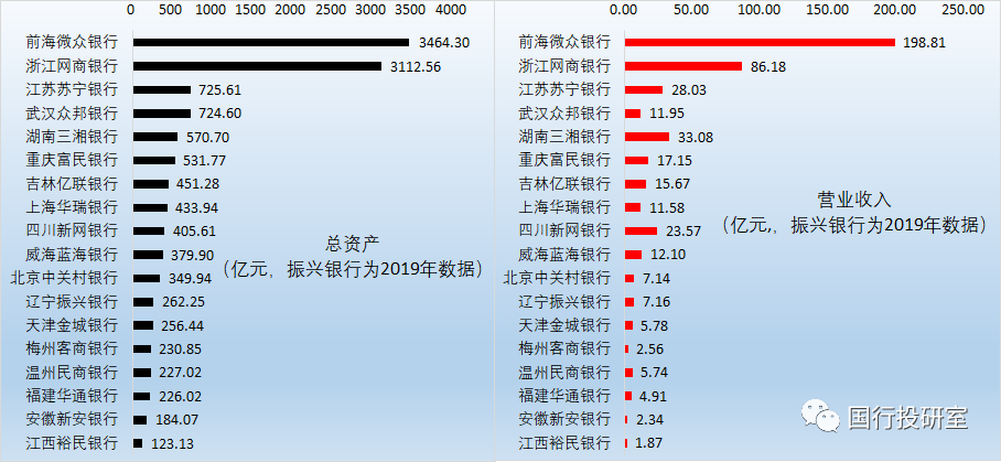 這里主要結合各民營銀行最新財報(除無錫錫商銀行還未公布、遼寧振興銀行最新數據僅為2019年外,其余17家民營銀行均為2020年數據)公布的信息。