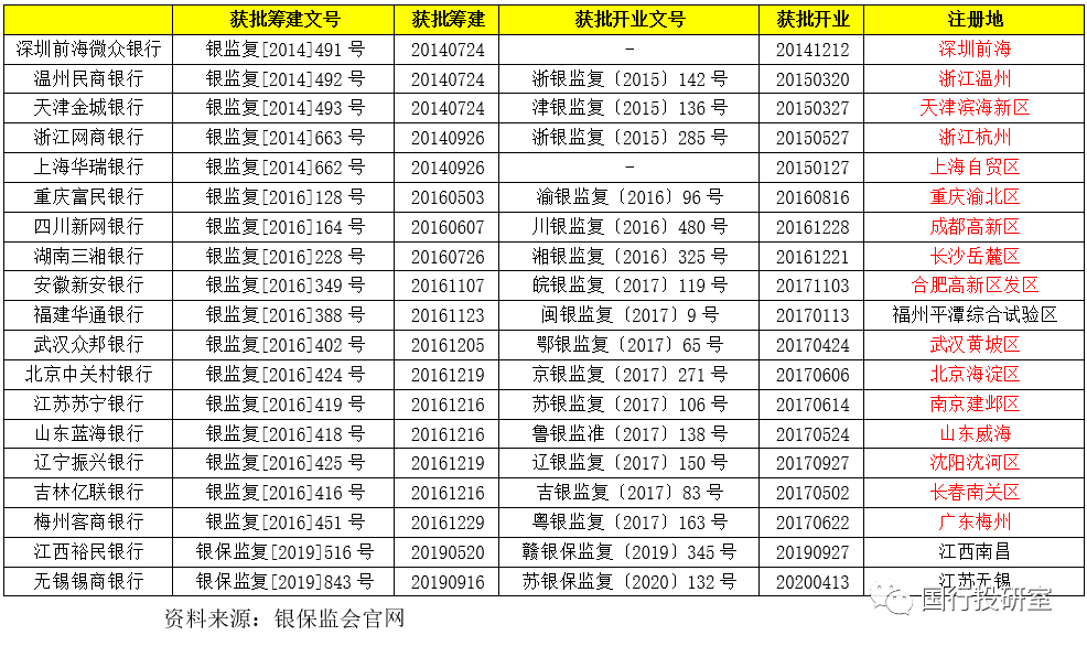 3、受政策層面的導向影響,民營銀行在沉寂兩年后,重啟批籌。2019年5月20日和2019年9月16日,我國第18家與第19家民營銀行(即江西裕民銀行和無錫錫商銀行)相繼獲批籌建。