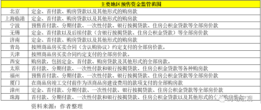 西安地區亦明確預售資金監管是對用于本預售項目的建筑安裝費用、小區內配套設施建設費用、全裝修商品住房項目裝修費用、開發建設費用和償還項目開發貸款等預售資金的監督管理。