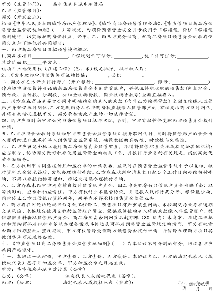 同時,監管銀行通常還需要與當地住建部門簽訂預售資金監管合作協議。