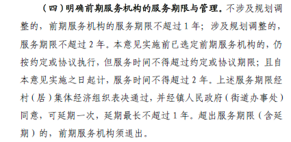 本部分內容從四個方面進行了明確:1、明晰前期工作內容;2、確定前期工作組織模式;3、規范前期服務機構的選取;4、明確前期服務機構的服務期限與管理。